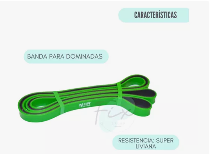 Banda elástica dominadas MIR super liviana de intensidad que permite mediante su colocación en la barra ayudar al cuerpo en el trabajo de dominadas. Utilización: Para ejercitar y tonificar brazos.