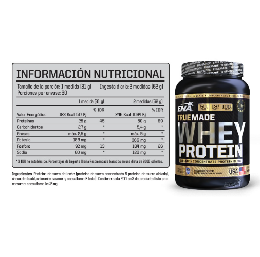– Whey protein concentrate (WPC): perfil completo de aminoácidos esenciales, brindando la mejor calidad de proteínas para aumentar la energía durante el entrenamiento.